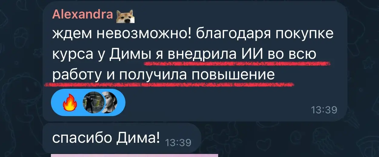 Моя личная работа стоит от 250.000 рублей и выше: я же даю вам возможность войти в мир нейросетей в 5 раз ДЕШЕВЛЕ и возможность окупить уже через 1-2 месяца