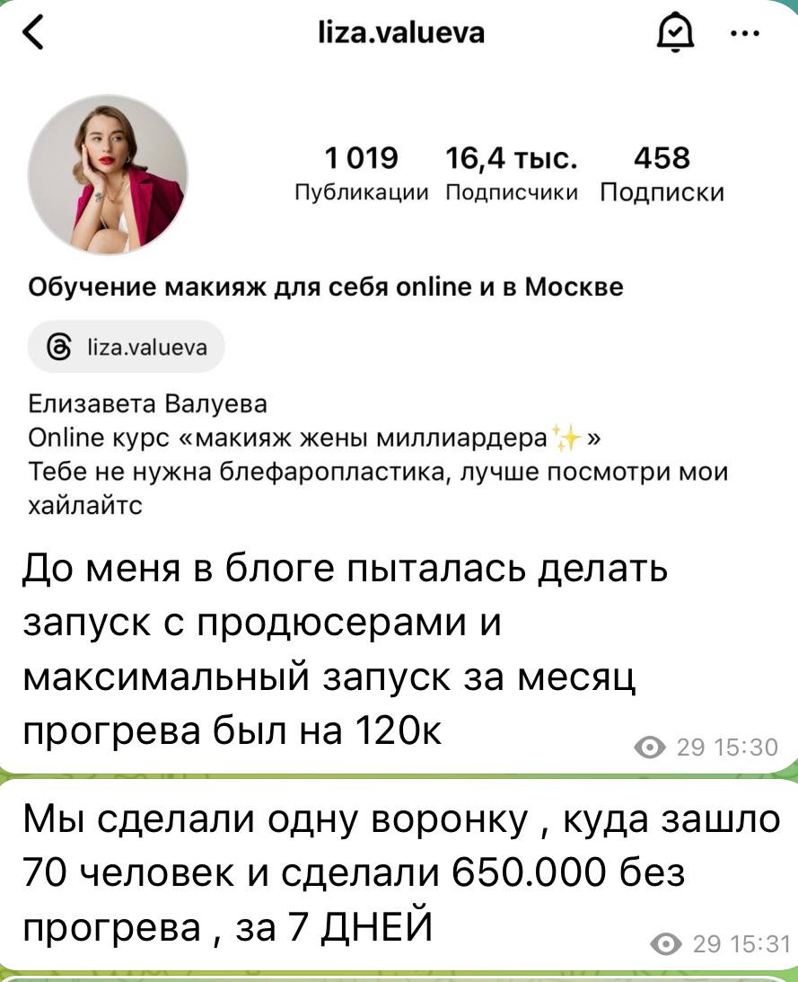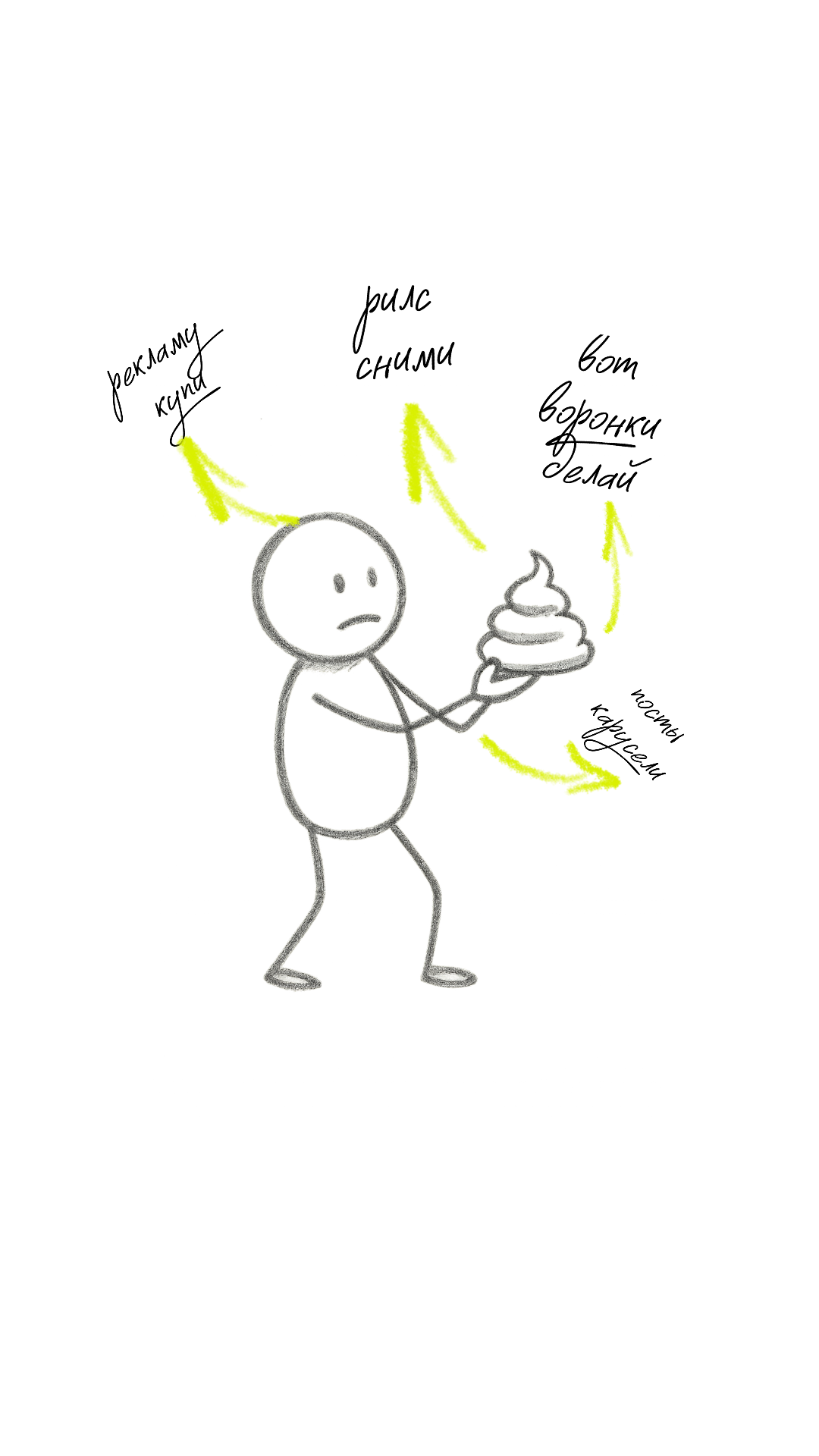 Просто вы 100% сделали со своими наставниками и продюсерами не одну воронку, не один сториттелинг, не один рилс, и это дало только то, что вы ЗАЕБАЛИСЬ